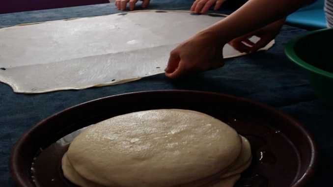 Üstüne sıvı yağ sürün, kat kat yağlayın üst üste koyun.